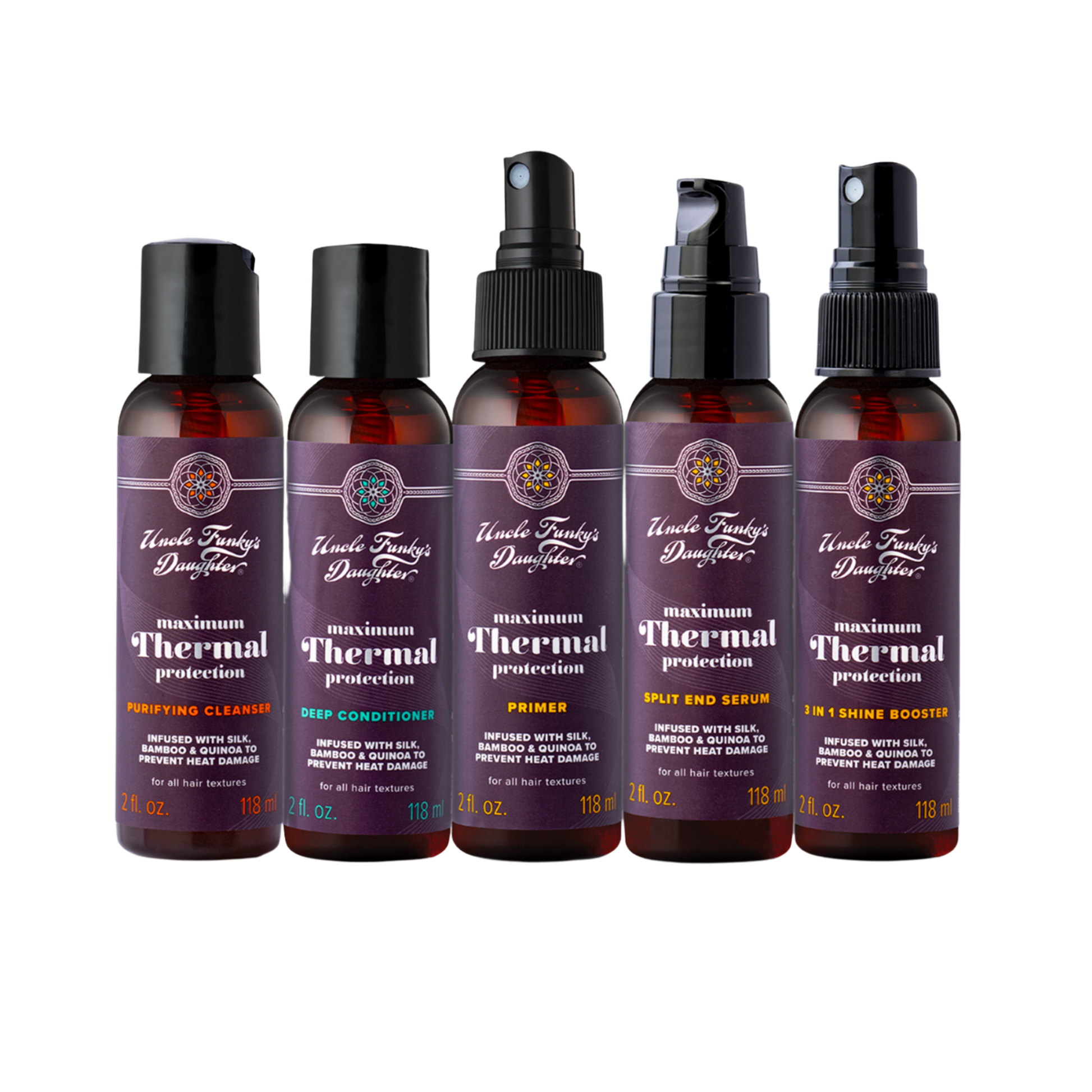 Protect your hair from heat with our TSA-approved Maximum Thermal Protection kit, crafted with a blend of silk, bamboo, and quinoa. Perfect for sampling our top picks on the go!